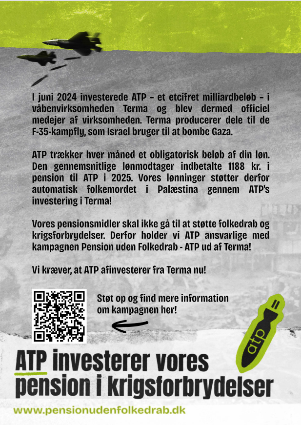 Alle kan være en del af kampagnen! Det er ligegyldigt, hvor du bor, hvor gammel du er, og om du har erfaring med aktivistisk og politisk arbejde. ATPs investering i Terma er et angreb på os alle!